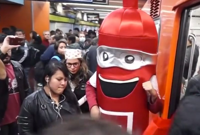 เม็กซิโกซิตี 14 ก.พ.- ทีมงานในหุ่นถุงยางอนามัยยักษ์และอาสาสมัครออกประชาสัมพันธ์แจกถุงยางอนามัย 100,000 ชิ้นตามสถานีรถไฟใต้ดินและทางผ่านผู้คนทั่วกรุงเม็กซิโกซิตี