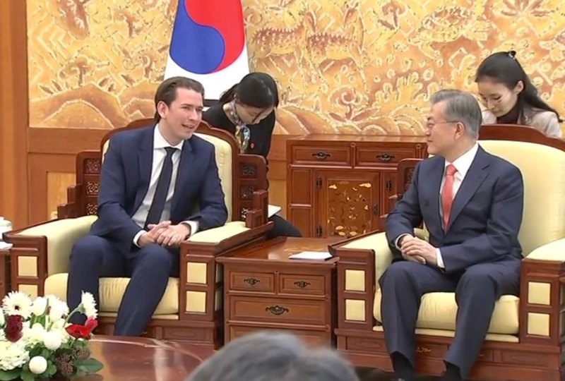 ทำเนียบประธานาธิบดีเกาหลีใต้แถลงว่า นายกฯออสเตรียและประธานาธิบดีคิมได้หารือความสัมพันธ์ทางการทูตและย้ำความสนับสนุนของออสเตรียที่มีต่อกระบวนการสันติภาพบนคาบสมุทรเกาหลี แถลงการณ์ระบุว่านายเคิร์ซเดินทางถึงเกาหลีใต้ในวันพฤหัสบดีเพื่อเยือนอย่างเป็นทางการเป็นเวลา 3 วัน นับเป็นนายกรัฐมนตรีออสเตรียคนแรกในรอบ 19 ปีที่เดินทางเยือนเกาหลีใต้ ออสเตรียและเกาหลีใต้สถาปนาความสัมพันธ์ทางการทูตกันมาตั้งแต่ปี 2435 .- สำนักข่าวไทย
