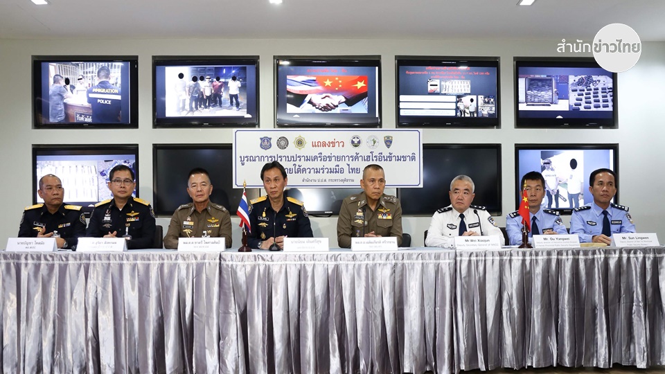 Deputy national police chief Chalermkiat Sriworakhan and Wei Xiaojun, the deputy secretary-general of China’s National Narcotics Contril Commission, China’s top drug enforcement agency jointly held a press conference on Monday on the arrest of the Chinese drug fugitive who was hiding in Thailand.