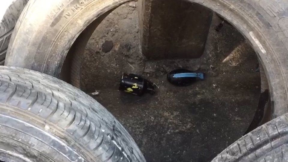 Bomb experts later found that the practice grenade was powerless and the other object was a fake bomb, a can made to look like a bomb.