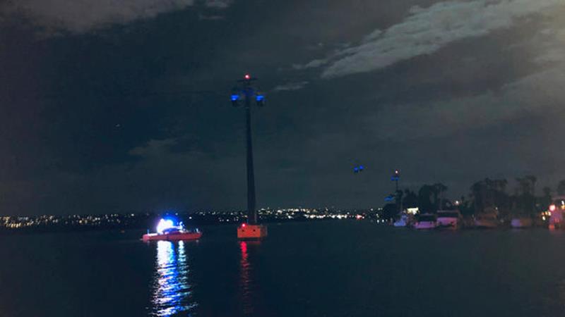 สวนน้ำซีเวิลด์ที่แซนดีเอโกแจ้งเจ้าหน้าที่กู้ภัยเมื่อเวลา 19.30 น.วันจันทร์ตามเวลาท้องถิ่นว่า มีคนสิบกว่าคนติดอยู่ในกระเช้าเหนืออ่าวมิชชัน เจ้าหน้าที่กู้ภัยต้องใช้เชือกโรยตัวผู้เคราะห้ร้ายลงไปยังเรือที่จอดรออยู่ในอ่าวทีละคน ในจำนวนนี้มีทารกและผู้พิการรวมอยู่ด้วย โดยมีเจ้าหน้าที่แพทย์รอตรวจสุขภาพที่ท่าเรือ ทั้งหมดปลอดภัยดี สำนักอุตุนิยมวิทยาแห่งชาติรายงานว่า ลมกระโชกความเร็ว 32 กิโลเมตรต่อชั่วโมงจากทางเหนือพัดกระหน่ำสวนน้ำช่วงเย็นวันจันทร์ ขณะที่อุณหภูมิลดลงอย่างต่อเนื่องจาก 40 กว่าองศาฟาเรนไฮต์ หรือราว 7 องศาเซลเซียส