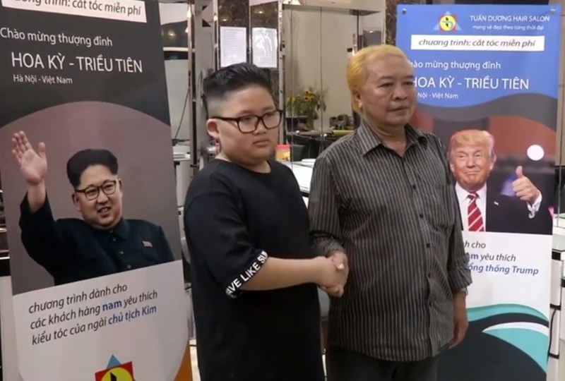 ที่ร้านตัดผมในเวียดนาม นายเล ฟุก ไฮ คนขับรถแท็กซีวัย 66 ปีอดทนรอย้อมสีผมเพื่อเปลี่ยนผมสีดำธรรมชาติของเขาเป็นสีส้มทองแบบเดียวกับนายทรัมป์ผู้นำสหรัฐ พร้อมกับบอกว่าเขาชื่นชอบนายโดนัลด์ ทรัมป์มาก และอยากเลียนแบบทรงผม จากนั้นในอีกไม่ถึงชั่วโมงเขาก็ได้ผมสีบลอนด์-ส้มสมใจอยาก ส่วนเก้าอี้ถัดไปเป็นเด็กชายโท ซา ฮอยวัย 9 ขวบที่มีชื่อเล่นว่าอึนจากการที่เค้าหน้าและรูปร่างเหมือนผู้นำเกาหลีเหนือ เขาบอกว่าตื่นเต้นที่นายคิมจะมาเยือนกรุงฮานอยและหวังอยากมีโอกาสได้เข้าพบเป็นการส่วนตัว นายไฮและดช.ฮอยเป็นหนึ่งในลูกค้าหลายสิบคนของช่างผมเล ทวน เดืองที่ทำผมทรงผู้นำชื่อดัง เดืองบอกว่า มีโปรโมชันตัดผมทรงทรัมป์และคิมให้ฟรีไปจนถึงวันเสร็จสิ้นการประชุมสุดยอด 28 กุมภาพันธ์นี้ ช่างผมเวียดนามบอกว่า ทรงผมของนายคิมแสดงถึงความเป็นคนหนุ่ม ส่วนทรงผมนายทรัมป์บ่งบอกถึงความมีอำนาจ แต่เผยว่าทรงผมนายคิมเป็นที่นิยมของลูกค้ามากที่สุด .- สำนักข่าวไทย