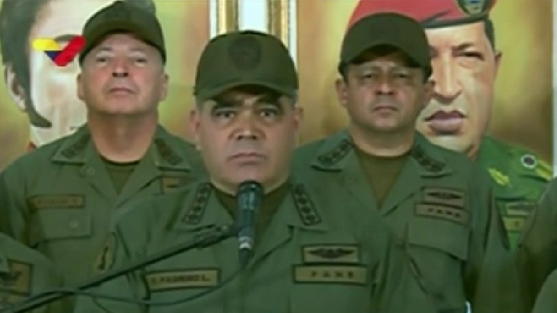 พล.อ.วาดิเมียร์ ปาดรีโน โลเปซ รัฐมนตรีกลาโหมเวเนซุเอลากล่าวว่า กองทัพจะยังคงประจำการและเตรียมพร้อมตลอดแนวพรมแดน ป้องกันการถูกละเมิดอธิปไตยดินแดน ขอย้ำว่ากองทัพจะเชื่อฟัง อยู่ใต้การบังคับบัญชา และภักดีต่อประธานาธิบดีนิโกลัส มาดูโร ส่วนเรื่องที่ประธานาธิบดีทรัมป์ขู่เมื่อวันก่อนว่าหากยังสนับสนุนนายมาดูโรต่อไป กองทัพเวเนซุเอลาจะไม่มีที่หลบภัย ไม่มีทางออก ถึงทางตัน และสูญเสียทุกสิ่งทุกอย่างนั้น รัฐมนตรีกลาโหมเวเนซุเอลาประณามผู้นำสหรัฐว่า ยโสโอหัง หากกองกำลังต่างชาติพยายามใช้กำลังแต่งตั้งรัฐบาลใหม่ ก็จะต้องข้ามศพพวกเขาไปก่อน