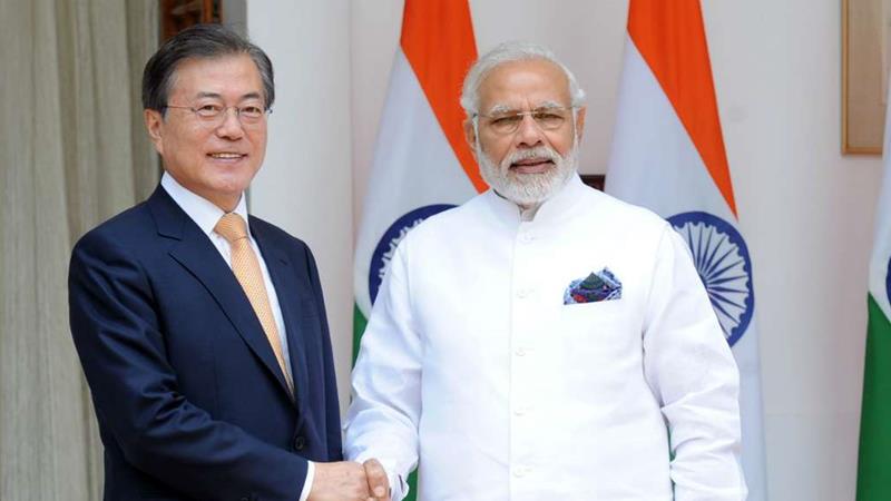โซล 22 ก.พ.- นายกรัฐมนตรีนเรนทรา โมดีของอินเดียและประธานาธิบดีมุน แจอินของเกาหลีใต้ตกลงกันว่าจะยกระดับความร่วมมือทวิภาคีให้แข็งแกร่งขึ้นในหลายด้าน เช่น เศรษฐกิจ การต่อต้านก่อการร้าย การทหาร และประเด็นคาบสมุทรเกาหลี