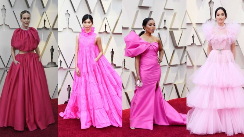 แฟชั่นที่น่าสังเกตอีกอย่างคือ ปีนี้ดาราเลือกชุดสีชมพูหลากเฉดละลานตา เจมมา ชาน ดาราสาวแฟชั่นนิสตาจาก “Crazy Rich Asians” เรียกสายตาด้วยชุดคอปีนสีชมพูนีออนฟูฟ่อง แองเจลา บาสเซตต์ จาก ”Black Panther” อยู่ในชุดเปิดไหล่ข้างเดียว สีชมพูเงาวับ นักร้องคันทรีชาวอเมริกันเคซี มัสเกรฟส์ รวมทั้งดาราหญิงลินดา คาร์เดลลินี และเฮเลน มิเรน ใจตรงกันเลือกชุดสีชมพูหวานบางเบา ฟากคนบันเทิงฝ่ายชายเลือกชุดสีเข้มตามสไตล์ สไปค์ ลี ผู้กำกับคนดังที่คว้ารางวัลออสการ์สาขาบทภาพยนตร์ดัดแปลงยอดเยี่ยม จากหนังดราม่าสีผิว “BlacKkKlansman” เลือกชุดสูทสีม่วงเข้ม และริชาร์ด อี.แกรนต์ นักแสดงชายสวมชุดสูทสีแดงไวน์ สำหรับคนบันเทิงหญิงที่เลือกสวมกางเกงมางานออสการ์ ได้แก่ เมลิสซา แมคคาร์ทนีย์ ที่ได้รับการเสนอชื่อชิงรางวัลนักแสดงนำหญิงยอดเยี่ยม มาในชุดกางเกงทรงขากระบอกสีดำและเสื้อสีขาวติดผ้าคลุมยาวด้านหลัง .- สำนักข่าวไทย