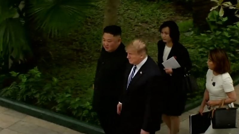 ฮานอย 28 ก.พ.- นายคิม จองอึน ผู้นำเกาหลีเหนือและประธานาธิบดีโดนัลด์ ทรัมป์ของสหรัฐเดินเล่นภายในโรงแรมสถานที่จัดการประชุมสุดยอด (ซัมมิต) หลังเสร็จสิ้นการหารือรอบแรกของการซัมมิตวันที่สอง ก่อนกลับเข้าไปหารือกันต่อ