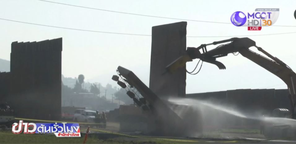 สหรัฐ 28 ก.พ. – ทางการสหรัฐทำลายกำแพงต้นแบบทั้ง 8 ชิ้น ที่ใช้เป็นตัวอย่างสำหรับการก่อสร้างกำแพงกั้นชายแดนเม็กซิโก โดยกำแพงต้นแบบเหล่านี้ถูกสร้างขึ้นที่เมืองซานดิเอโก ซึ่งมีพรมแดนติดกับเมืองติฮัวนาของเม็กซิโก เป็นกำแพงคอนกรีต 4 กำแพง และกำแพงเหล็กอีก 4 กำแพง ถูกสร้างขึ้นหลังจากที่ประธานาธิบดีโดนัลด์ ทรัมป์ เข้ารับตำแหน่งได้ 9 เดือน