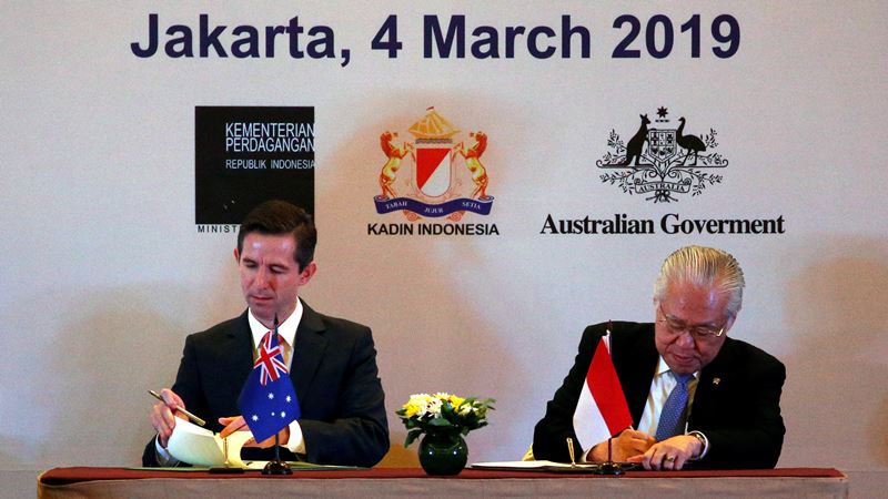 นายเองการ์เตียสโต ลูกิตา รัฐมนตรีการค้าอินโดนีเซีย และนายไซมอน เบอร์มิงแฮม รัฐมนตรีการค้าออสเตรเลียลงนามในความตกลงการค้ามูลค่าหลายพันล้านดอลลาร์ในกรุงจาการ์ตา หลังจากเริ่มเจรจากันตั้งแต่เมื่อ 9 ปีก่อน ข้อตกลงดังกล่าวรวมถึงการที่อินโดนีเซียจะเข้าถึงตลาดปศุสัตว์และแกะในอินโดนีเซียได้มากขึ้น ในขณะที่สถาบันศึกษาออสเตรเลีย ผู้ประกอบการด้านสาธารสุข และเหมืองแร่จะได้ประโยชน์ในการเข้าถึงตลาดอินโดนีเซียที่มีขนาดใหญ่ที่สุดในภูมิภาคเอเชียตะวันออกเฉียงใต้เช่นกัน การเข้าถึงตลาดออสเตรเลียได้มากขึ้น จะช่วยกระตุ้นธุรกิจของผู้ประกอบการในอินโดนีเซีย เช่น ภาคยานยนต์ สิ่งทอ ไม้ อิเล็กทรอกนิกส์ และเวชภัณฑ์ มูลค่าการค้าระหว่างออสเตรเลียกับอินโดนีเซียอยู่ที่ 11,700 ล้านดอลลาร์ (374,400 ล้านบาท) รัฐมนตรีออสเตรเลียและอินโดนีเซียกล่าวชื่นชมว่าเป็นข้อตกลงที่ช่วยกระชับความสัมพันธ์สองประเทศให้แน่นแฟ้นยิ่งขึ้น .- สำนักข่าวไทย