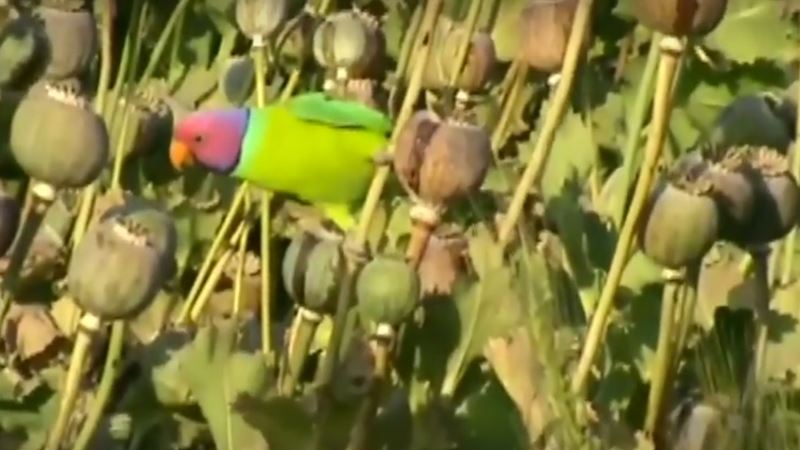 ผู้เชี่ยวชาญด้านฝิ่นที่วิทยาลัยการปลูกพืชเรือนกระจก เขตมันด์ซอร์ รัฐมัธยประเทศอธิบายว่า ผลฝิ่นมีสารแอลคาลอยด์และสเตียรอยด์ นกแก้วคงเคยสัมผัสมาแล้วและรู้สึกผ่อนคลาย จึงติดใจพากันมาขโมยเป็นฝูง.- สำนักข่าวไทย