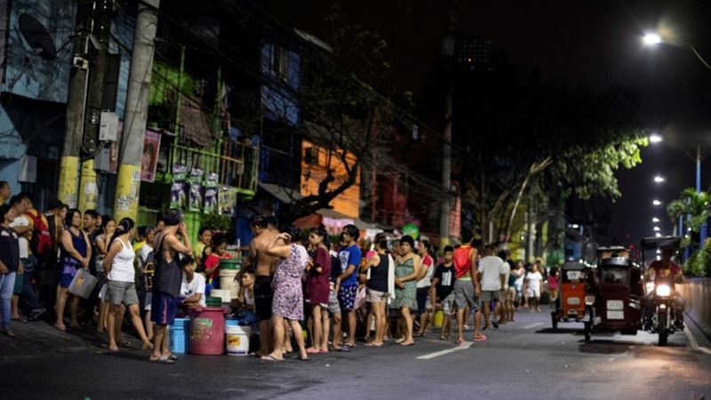 ในแต่ละวันท่อประปาไม่มีน้ำไหลเป็นเวลาตั้งแต่ 4-20 ชั่วโมงตามบ้านเรือนกว่าครึ่งหนึ่งของกรุงมะนิลาที่มีประชากร 12 ล้านคน เนื่องจากไม่มีฝนตกและระบบสาธารณูปโภคไม่เพียงพอ ภาวะขาดแคลนน้ำในเมืองหลวงของฟิลิปปินส์มีมาตั้งแต่เมื่อปลายสัปดาห์ที่แล้ว บางพื้นที่ฝั่งตะวันออกของเมืองหลวงวิกฤตหนักถึงขั้นไม่มีน้ำไหลเลย บริษัทการประปามะนิลาซึ่งเป็นหนึ่งในสองผู้ให้บริการในเมืองหลวงฟิลิปปินส์ แถลงว่า จะใช้แผนตัดการส่งน้ำให้เท่าเทียมกันในทุกพื้นที่ของกรุงมะนิลาเพื่อปันส่วนน้ำให้ทั่วถึง ผู้จัดการการประปามะนิลา กล่าวว่า ครั้งนี้เป็นวิกฤติขาดแคลนน้ำครั้งรุนแรงที่สุดของกรุงมะนิลา โดยเมื่อปีที่แล้วเกิดปัญหารุนแรงเช่นกัน แต่มีฝนตกหนักทำให้รอดพ้นวิกฤติไปได้ คาดกันว่าภาวะขาดแคลนน้ำจะมีไปจนถึงเดือนกรกฎาคมซึ่งจะเป็นช่วงเข้าสู่ฤดูฝน.- สำนักข่าวไทย
