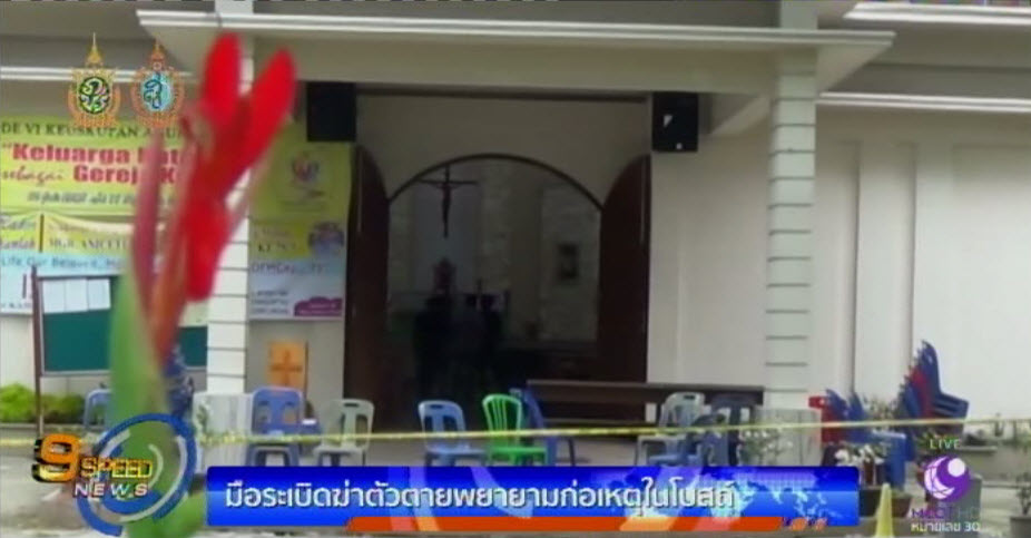 อินโดนีเซีย 28 ส.ค. – หนุ่มวัยรุ่นชาวอินโดนีเซียทำทีเป็นผู้มาเข้าโบสถ์วันอาทิตย์ลุกจากม้านั่งควงมีดเข้าจ้วงแทงบาทหลวงคาทอลิก วัย 60 ปี แต่พลาดไปโดนที่แขนและพยายามจุดชนวนระเบิดฆ่าตัวตายท่ามกลางพิธีสวดมนต์ในโบสถ์เซ็นโจเซฟในเมืองเมดาน ทางตะวันตกของเกาะสุมาตรา แต่ระเบิดไม่ทำงานจึงถูกเจ้าหน้าที่ในโบสถ์ช่วยกันจับกุมตัวส่งตำรวจ สำหรับบาทหลวงถูกนำส่งโรงพยาบาลอาการปลอดภัยแล้ว และภาพมือมีดที่ทำร้ายบาทหลวงซึ่งเผยแพร่ในโลกออนไลน์ระบุว่า เป็นมุสลิมและค้นพบในตัวมีสัญลักษณ์บ่งชี้ว่าเป็นผู้สนับสนุนขบวนการไอเอส ตำรวจกำลังสอบสวนว่าอะไรเป็นสาเหตุที่ทำให้ชายดังกล่าวก่อเหตุในขึ้น. -สำนักข่าวไทย