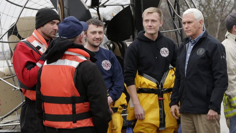 เนแบรสกา 20 มี.ค. – นายไมค์ เพนซ์รองประธานาธิบดีสหรัฐลงตรวจดูพื้นที่ประสบภัยน้ำท่วมในรัฐเนแบรสกา ทั้งที่แม่น้ำเอลคอร์น พูดคุยกับหน่วยงานที่ให้ความช่วยเหลือและพบปะพูดคุยกับประชาชนที่ต้องอพยพมาอยู่ที่ศูนย์พักพิง