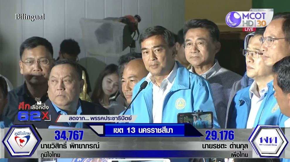 “I must take responsibility for the failure. I resign from my leadership of the Democrat Party, effective immediately,” said Abhisit.