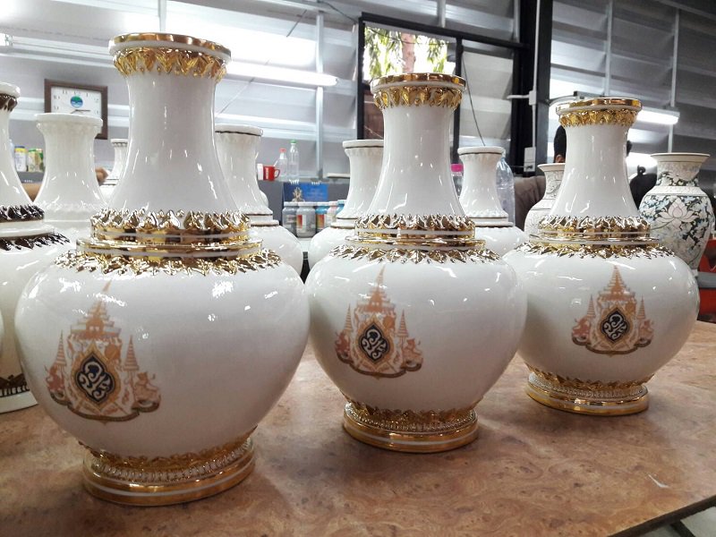 RATCHABURI, March 27 (TNA) – A pottery factory in Ratchaburi is making water vessels that will be used for collecting water from sources in 77 provinces for the royal coronation ceremony in May.