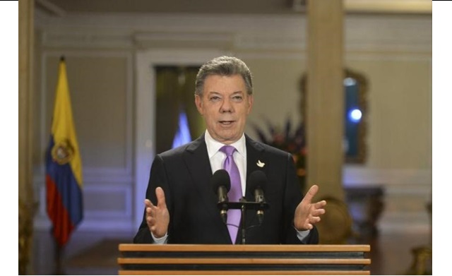 ในขณะที่โคลอมเบียกำลังเดินหน้าจัดการลงประชามติเรื่องข้อตกลงสันติภาพในวันที่ 2 ตุลาคมนี้ ประธานาธิบดีซานโตสได้สั่งการให้หยุดยิงอย่างเด็ดขาดตั้งแต่วันจันทร์เป็นต้นไป ซึ่งถือเป็นการยุติความเป็นปรปักษ์ต่อกันระหว่างรัฐบาลกับกลุ่มกบฎฟาร์ก ซึ่งทำให้มีผู้เสียชีวิตหลายแสนคนและอีกหลายล้านคนต้องอพยพออกจากบ้านเรือนเพื่อหนีภัยการสู้รบ ประธานาธิบดีซานโตส กล่าวงปราศรัยที่บริเวณขั้นบันไดของรัฐสภาว่า การต่อสู้กับกลุ่มฟาร์กยุติลงแล้ว ผู้นำโคคอมเบียเดินทางมารัฐสภาเพื่อยื่นเอกสารอย่างเป็นทางการ ซึ่งเป็นข้อตกลงกับกลุ่มกบฎฟาร์กความยาว 297 หน้า ที่ผู้แทนเจรจาทั้งสาองฝ่ายสามารถบรรลุข้อตกลงได้เมื่อวันพุธที่ผ่านมา โดยขณะนี้ชะตากรรมของข้อตกลงดังกล่าว ที่ใช้เวลาในการเจรจายาวนานเกือบ 4 ปี ที่คิวบา ขึ้นอยู่กับการตัดสินใจจของประชาชนว่าจะลงมติยอมรับหรือไม่ยอมรับข้อตกลงนี้ โดยแกนนำผู้ที่คัดค้านได้แก่ อดีตประธานาธิบดีอัลวาโร อูริเบ ที่รณรงค์ให้ประชาชนเลือกไม่รับข้อตกลงนี้โดยระบุว่า รัฐบาลยอมให้กับกลุ่มฟาร์กมากเกินไป สำหรับผลการสำรวจความเห็นของประชาชนปรากฎว่ายังมีความเห็นก้ำกึ่งว่าจะลงคะแนนเสียงรับหรือไม่รับข้อตกลงสันติภาพ.-สำนักข่าวไทย