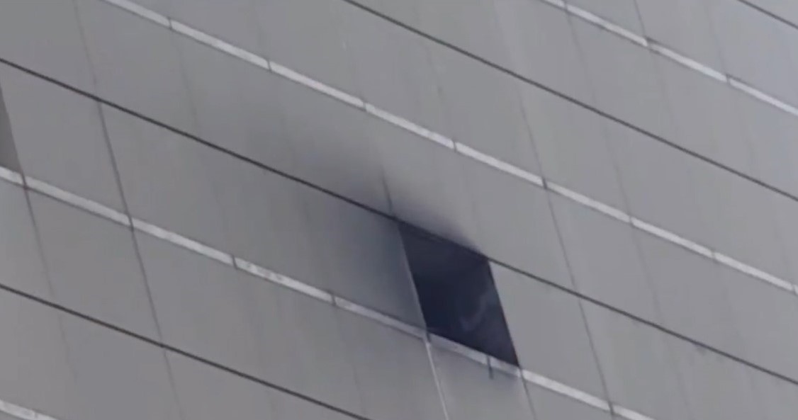 black smoke billowed out from the eight floor of the shopping center, adjacent