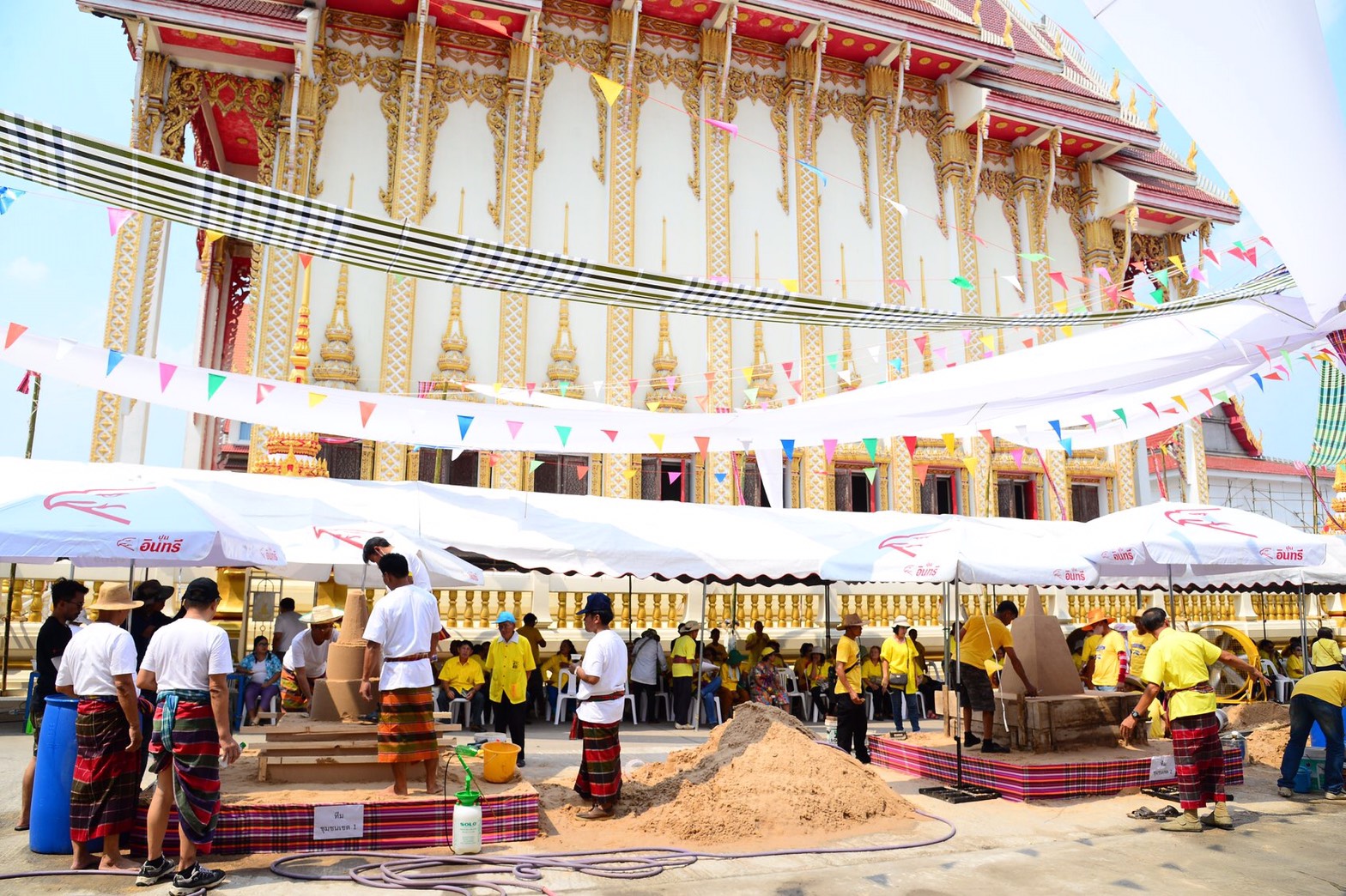 They visited Wat That on Klang Muang Road in Nai Muang sub-district of Muang district. Visitors paid respect to Phra Phut Phra Lap, a revered Buddha image of Khon Kaen, in the praying hall of the temple. They also traditionally bathed Phra That Nakhon Derm pagoda and built piles of sand there to maintain the longstanding customs related to the Songkran festival.