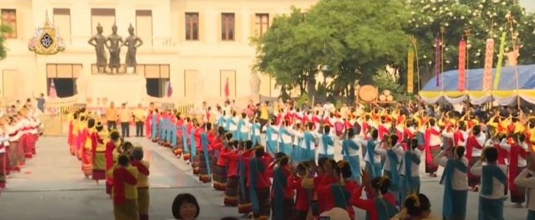 Participants gave alms to Buddhist monks. Traditional dancers of various ages performed finger nail dances in a procession from the Chang Phuak Gate to the monument.