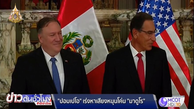 เวเนซุเอลา 14 เม.ย.-นายไมค์ พอมเพโอ รัฐมนตรีต่างประเทศสหรัฐ เข้าพบประธานาธิบดีมาร์ติน วิซคาร์รา ของเปรู เมื่อวานนี้ ซึ่งเป็นส่วนหนึ่งในแผนการเยือนประเทศละตินอเมริกา เพื่อหาเสียงสนับสนุนในการต่อต้านประธานาธิบดีนิโกลาส มาดูโร ของเวเนซุเอลา หลังหารือแล้วนายพอมเพโอได้แถลงร่วมกับนายเนสเตอร์ โปโปลิซิโอ รัฐมนตรีต่างประเทศเปรู ว่าผลการต่อต้านประธานาธิบดีมาดูโรของสหรัฐจะทำให้ชาวเวเนซุเอลาที่หลั่งไหลออกนอกประเทศได้กลับสู่มาตุภูมิได้เร็วขึ้นได้