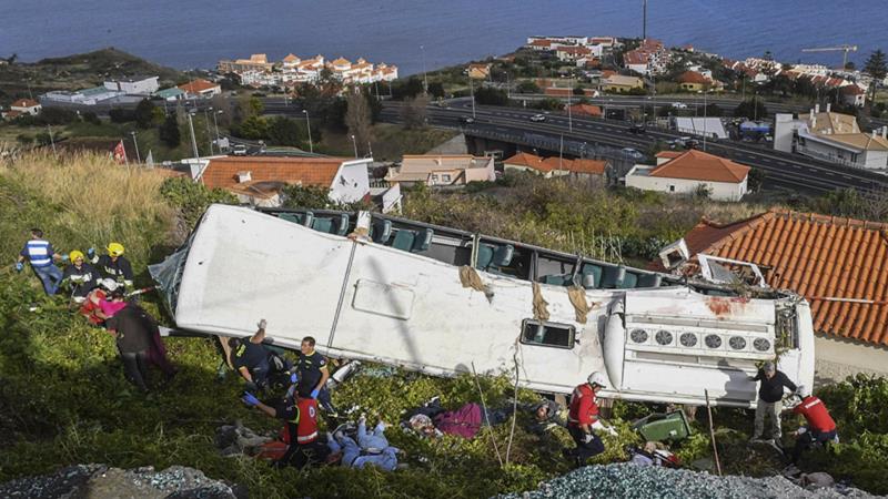 มาเดรา 18 เม.ย.-รถบัสนักท่องเที่ยวชาวเยอรมันตกถนนแล้วพลิกคว่ำบนเกาะมาเดรา แหล่งท่องเที่ยวชื่อดังของโปรตุเกส มีผู้เสียชีวิตแล้ว 29 คน บาดเจ็บ 27 คน