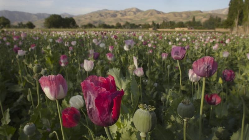 ผู้สื่อข่าวเอเอฟพีรายงานว่า ทุ่งฝิ่นไกลสุดลูกหูลูกตาเป็นสิ่งที่พบได้ทั่วไปตามชนบทของอัฟกานิสถาน รวมทั้งเมืองลาชการ์กาห์ จังหวัดเฮลมันด์ ทางใต้ของประเทศที่เป็นพื้นที่ของรัฐบาล แรงงานเก็บน้ำยางจากดอกฝิ่นคนหนึ่งยอมรับว่า รู้ดีว่าฝิ่นเป็นสิ่งไม่ดีแต่ไม่สามารถหาเงินด้วยวิธีอื่น พวกเขาปลูกฝิ่นกันมานานแล้ว เพราะทำเงินได้ดีและไม่เหนื่อยเท่าการปลูกข้าวโพดหรือข้าวสาลี อัฟกานิสถานเป็นผู้ปลูกฝิ่นใหญ่ที่สุดในโลก ประชาชนจำนวนมากยังชีพด้วยการปลูกพืชยาเสพติดชนิดนี้และได้รับความคุ้มครอง เนื่องจากทั้งรัฐบาลและกลุ่มตอลีบานมีรายได้จากการค้าฝิ่น