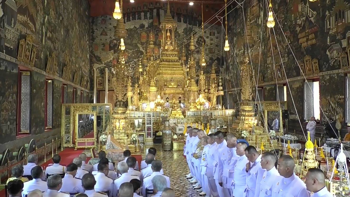 His Majesty the King graciously designated His Serene Highness Admiral Pusan Sawasdiwat as His Majesty’s representative to attend the inscription ceremony inside the ubosot of the Temple of Emerald Buddha.