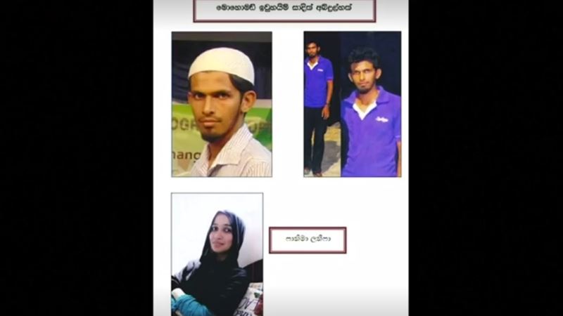 ทางการศรีลังกาเผยแพร่ภาพถ่ายผู้ต้องสงสัยจำนวนหนึ่ง ซีเอ็นเอ็นอ้างเจ้าหน้าที่และแหล่งข่าวศรีลังกาว่า มือระเบิดฆ่าตัวตายที่โรงแรมซินนามอนแกรนด์ เคยถูกจับและปล่อยตัวมาก่อน ขณะที่น้องหรือพี่ชายของเขาระเบิดฆ่าตัวตายที่โรงแรมอีกแห่งหนึ่ง ส่วนบิดาซึ่งเป็นเศรษฐีส่งออกเครื่องเทศรายใหญ่ของประเทศต้องสงสัยช่วยเหลือและสนับสนุนบุตรชายทั้งสองคน นอกจากนี้ตำรวจยังได้ควบคุมตัวสมาชิกคนอื่น ๆ ในครอบครัวนี้ด้วย จนถึงขณะนี้ทางการศรีลังกาควบคุมตัวผู้ต้องสงสัยแล้วกว่า 70 คน ในข้อหาต่าง ๆ กันตั้งแต่ก่อการร้าย ช่วยเหลือและสนับสนุนการก่อการร้าย ไปจนถึงคบคิดก่อการร้าย ผู้ต้องสงสัยทั้งหมดเป็นชาวศรีลังกาที่เป็นมุสลิม และมีสตรีรวมอยู่ด้วย 4 คน ผู้ต้องสงสัยส่วนใหญ่เป็นญาติมิตรของมือระเบิดฆ่าตัวตาย