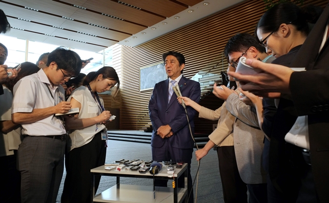 บรรษัทกระจายเสียงญี่ปุ่น (เอ็นเอชเค) รายงานว่า นายกรัฐมนตรีอาเบะกล่าวกับผู้สื่อข่าวว่า เป็นครั้งแรกที่เกาหลีเหนือยิงขีปนาวุธจากเรือดำน้ำล่วงล้ำเขตพิสูจน์ฝ่ายการป้องกันทางอากาศของญี่ปุ่น ขณะที่สำนักข่าวจิจิเพรสรายงานว่า นายกรัฐมนตรีอาเบะได้ประณามการกระทำของเกาหลีเหนือว่าเป็นภัยคุกคามใหญ่หลวงต่อสถานการณ์ความมั่นคงของญี่ปุ่น ถือเป็นการกระทำที่ไม่สามารถให้อภัยได้และไร้ความยั้งคิด หลังจากเมื่อต้นเดือนนี้เกาหลีเหนือได้ยิงขีปนาวุธนำวิถีจากพื้นดินตรงไปยังน่านน้ำในความควบคุมของญี่ปุ่นเป็นครั้งแรก และทำให้ญี่ปุ่นไม่พอใจมาแล้ว