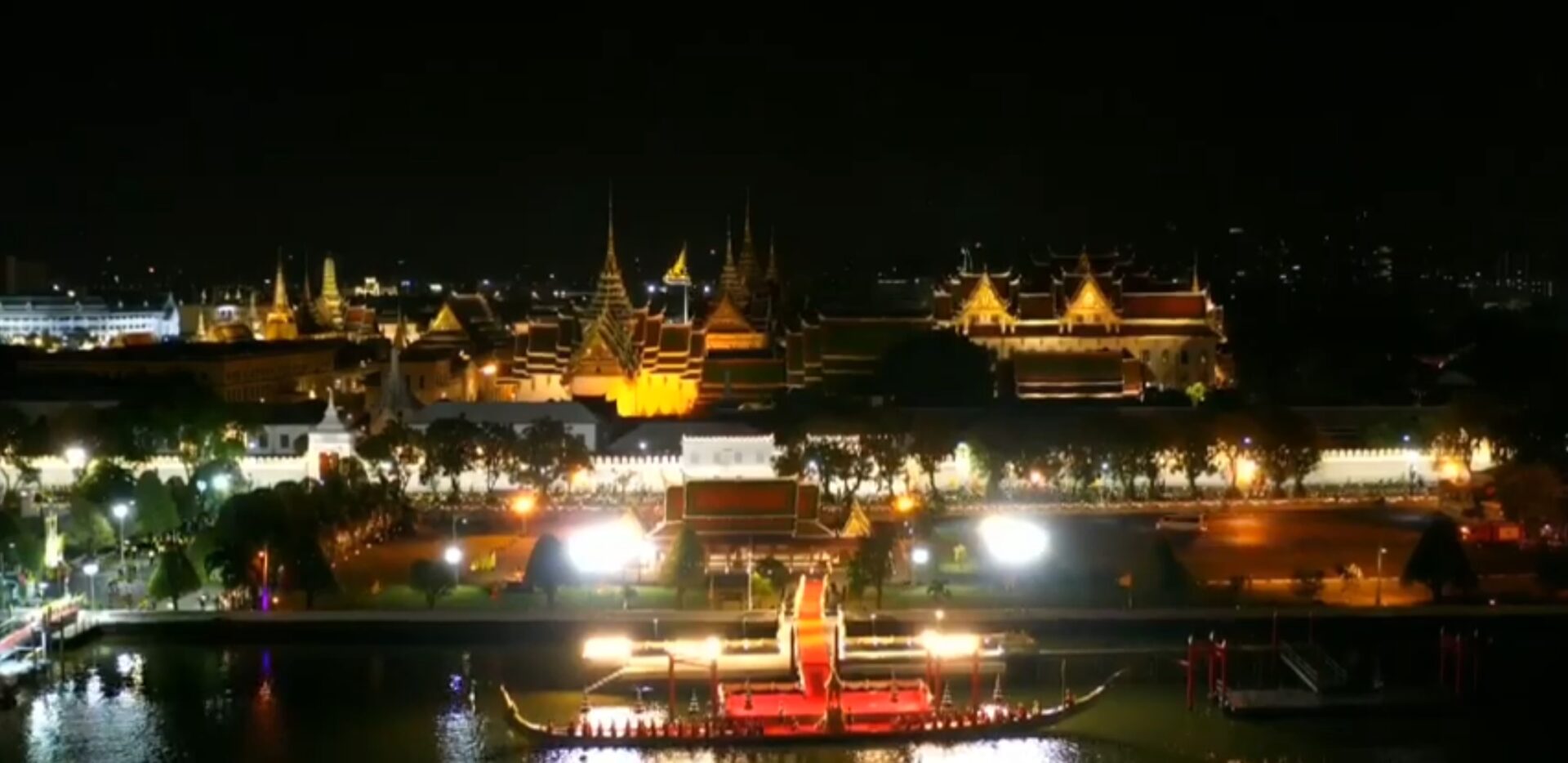 When the royal barge docked, 64 oarsmen paid homage in honor of His Majesty the King. The royal barge was presented to honor His Majesty the King traditionally for coronation-related ceremonies from May 4 to 6.