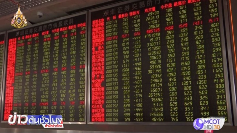 จีน 6 พ.ค.-ดัชนีตลาดหุ้นของจีนดิ่งลงอย่างหนัก หลังจากประธานาธิบดีโดนัลด์ ทรัมป์ ของสหรัฐ ขู่ว่าจะขึ้นภาษีสินค้าจีน เป็นมูลค่า 200,000 ล้านดอลลาร์สหรัฐ ความเคลื่อนไหวของตลาดหุ้นจีนเมื่อชวงเช้าที่ผ่านมา ดัชนีเซี่ยงไฮ้คอมโพสิตดิ่งลงไปถึง 5 เปอร์เซ็นต์ ก่อนจะกระเตื้องขึ้นเล็กน้อย ปิดตลาดในช่วงเช้าปรับลดลงไป 4.9 เปอร์เซ็นต์