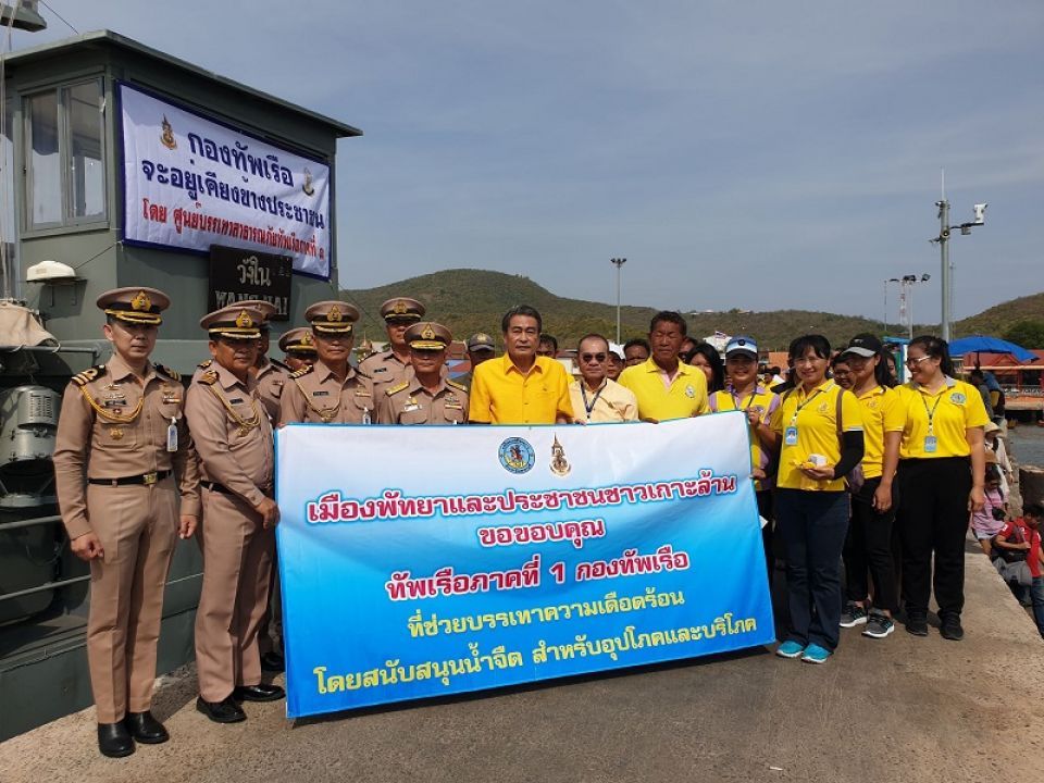Rear Admiral Pinyo Toliang, Deputy Commander of the First Naval Area Command handed over 100,000 litres of freshwater for consumption to the Pattaya city for supplying to Koh Larn, which is now facing shortage of water due to drought.