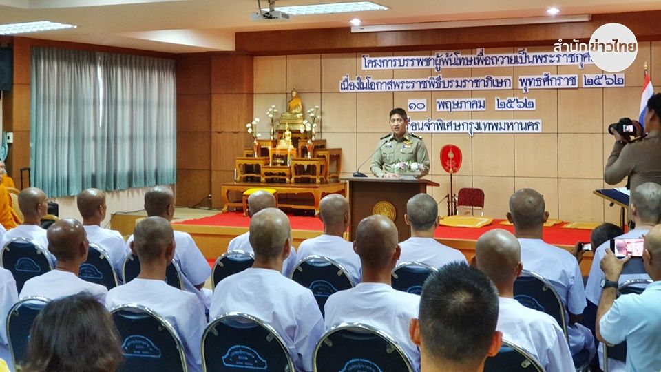 The ceremony concerned the release of inmates from the Bangkok Remand Prison, the Klong Prem Central Prison, the Central Women Correctional Institution, the Central Correctional Institution for Drug Addicts, and Corrections Hospital. On the occasion, 20 freed inmates were ordained as monks.