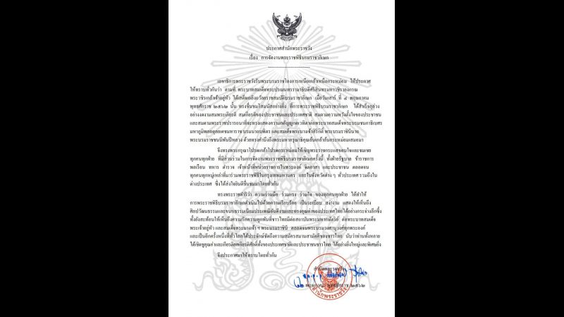 The Bureau of the Royal Household stated that His Majesty the King had the Lord Chamberlain announce that His Majesty the King was greatly pleased that the coronation happened successfully in the way that honored him, Thai people and the nation and the success served His Majesty the King’s intention to demonstrate through the coronation his gratitude towards his parents, King Rama IX and Her Majesty Queen Sirikit, The Queen Mother.