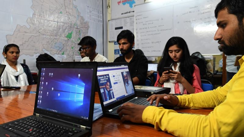 พรรคภารติยะชนตะ หรือบีเจพีของนายกรัฐมนตรีนเรนทรา โมดี และพรรคคองเกรสของนายราหุล คานธี เกณฑ์นักรบไซเบอร์ทั้งบอตและเกรียนออนไลน์ทำสงครามเสมือนจริงตลอดการลงคะแนนนาน 6 สัปดาห์ที่เริ่มมาตั้งแต่วันที่ 11 เมษายน และจะปิดฉากในวันที่ 19 พฤษภาคมนี้ ด้วยการระดมส่งข้อมูลทั้งจริงและเท็จไปยังโทรศัพท์มือถือของผู้มีสิทธิเลือกตั้ง 900 ล้านคน ในจำนวนนี้กว่า 500 ล้านใช้สมาร์ทโฟนที่สามารถเข้าถึงอินเทอร์เน็ต แยกเป็นผู้ใช้เฟซบุ๊ก 300 ล้านคน และผู้ใช้วอตส์แอปป์ 250 ล้านคน พรรคคองเกรสอ้างว่าใช้สื่อสังคมออนไลน์เพื่อรับฟังเสียงของประชาชน โดยใช้คนจริง ๆ ไม่ใช่บอตเหมือนพรรคบีเจพี ด้านพรรคบีเจพีโต้กลับว่า บัญชีทวิตเตอร์ของนายคานธีใช้บอตจากอินโดนีเซีย รัสเวีย อุซเบกิซสถานช่วยปั่นทวีต