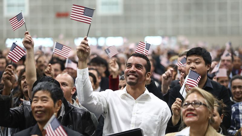 โคโลราโด 17 พ.ค.- ประชาชน 48 คนที่ได้สิทธิขอแปลงสัญชาติ เข้าพิธีสาบานตนเป็นขั้นตอนสุดท้ายของการแปลงสัญชาติเป็นพลเมืองอเมริกันที่สำนักงานปกครองส่วนท้องถิ่น รัฐโคโลราโด ในขณะที่ประธานาธิบดีโดนัลด์ ทรัมป์ของสหรัฐประกาศต้องการแก้กฎหมายคนต่างด้าวที่จะให้สิทธิกับคนเก่งได้เข้าเป็นพลเมืองอเมริกัน มากกว่าการช่วยเหลือผู้อพยพเข้ามาตามหลักมนุษยธรรมและใช้สายสัมพันธ์ในครอบครัวเพื่อให้ได้สัญชาติอเมริกัน