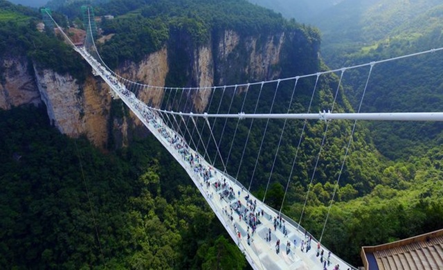 สะพานแก้วจางเจียเจี้ยได้รับการออกแบบโดยนายฮาม โดตัน สถาปนิกขาวอิสราเอล นอกจากการเปิดให้บริการนักท่องเที่ยวเดินผ่านกระจกแก้วสูงแล้ว ยังมีกิจกรรมท้าความสูง อาทิ กระโดดบันจีจัมพ์และโหนสลิงด้วย.-สำนักข่าวไทย