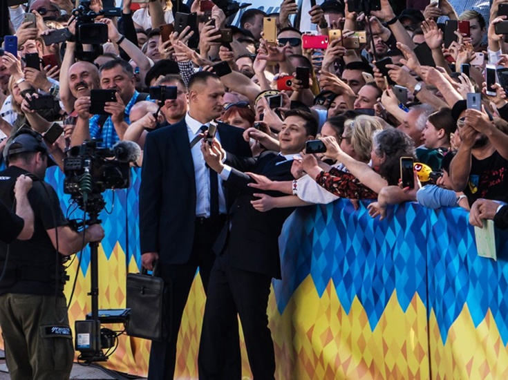 นายเซเลนสกีอดีตดาวตลกคนดังของยูเครนแตะมือทักทาย ถ่ายรูปเซลฟีร่วมกับผู้สนับสนุนกลุ่มใหญ่ที่มารอให้กำลังใจระหว่างเดินเข้าสู่สภา กลายเป็นการต้อนรับเขาก่อนเข้าพิธีสาบานตนรับตำแหน่งอย่างเป็นทางการในกรุงเคียฟ นายเซเลนสกี นักแสดงตลกทางโทรทัศน์วัย 41ปี และไม่มีประสบการณ์ทางการเมืองมาก่อน แต่คว้าชัยชนะอย่างถล่มทลายในการเลือกตั้งเหนืออดีตประธานาธิบดีเปโตร โปโรเชนโก ด้วยคะแนนเสียงร้อยละ 73 เมื่อเดือนที่แล้ว เขาจะมีบทบาทนำในฐานะประธานาธิบดีที่นำพาประเทศเข้าสู่ยุคใหม่หลังจากสงครามและปัญหาเศรษฐกิจเรื้อรัง .-สำนักข่าวไทย