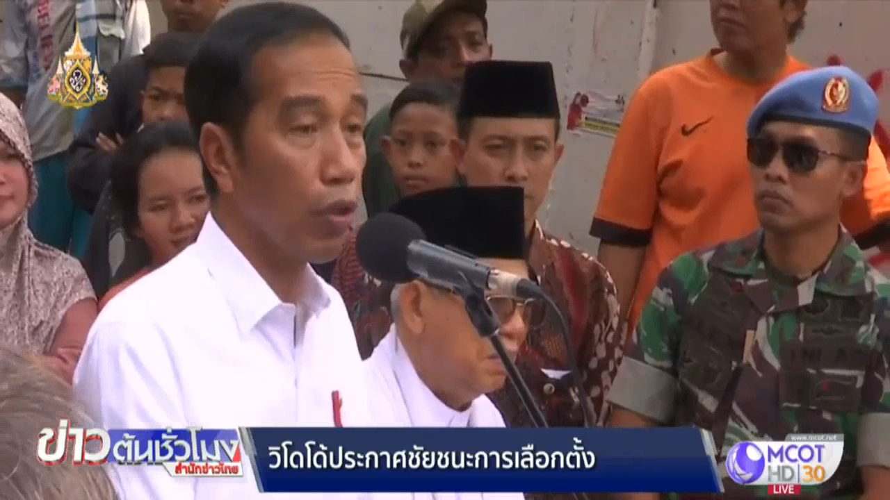 ประธานาธิบดีอินโดนีเซีย โจโก วิโดโด ประกาศคว้าชัยชนะในการเลือกตั้งประธานาธิบดี หลังจากที่เมื่อช่วงเช้าที่ผ่านมา คณะกรรมการการเลือกตั้งได้ประกาศผลคะแนนอย่างเป็นทางการ ซึ่งนายวิโดโด ได้คะแนนร้อยละ 55.5 เป็นการย้ำชัยชนะเหนือ นายพลปราโบโว ซูเบียนโต คู่ปรับเก่าเป็นครั้งที่สอง
