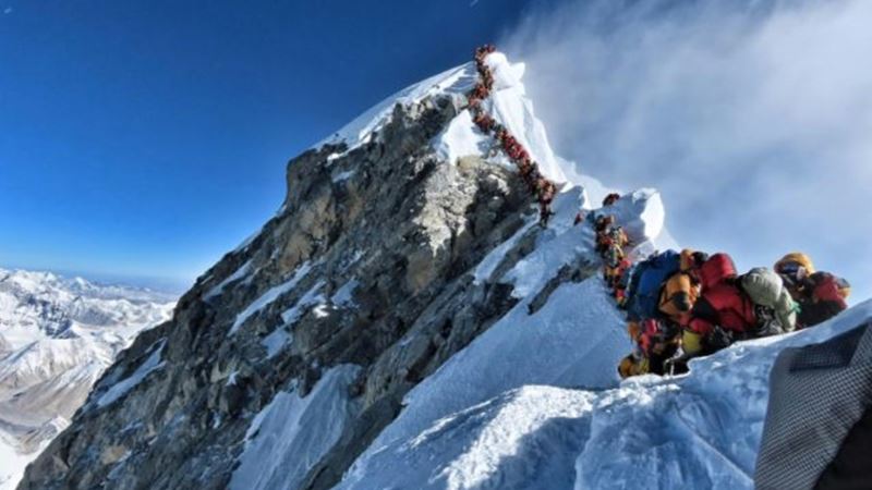 นักปีนเขากว่า 200 คนถือโอกาสในช่วงที่สภาพท้องฟ้าสดใสในวันพุธเพื่อปีนขึ้นยอดเขาเอเวอร์เรสต์จากทั้งฝั่งเนปาลและจีน ทำให้หลายทีมต้องต่อแถวยาวนานหลายชั่วโมงเพื่อรอขึ้นยอดเขา เสี่ยงโดนหิมะกัดและป่วยจากการอยู่บนที่สูง คณะเดินทางกล่าวว่า นักปีนเขาชาวอเมริกันและอินเดียเป็นรายล่าสุดที่เสียชีวิตในช่วงหนึ่งในวันที่การจราจรคับคั่งที่สุดบนภูเขาสูง 8,848 เมตร นักปีนเขาชาวอเมริกันวัย 55 ปีล้มลงระหว่างถ่ายรูป และชาวอินเดียวัย 55 ปีเสียชีวิตช่วงขาลงจากยอดเขาหลังจากต้องรอนานกว่าจะลงได้ เหตุเสียชีวิตดังกล่าวทำให้ยอดผู้เสียชีวิตรวมเป็น 4 คนที่เอเวอเรสต์ในฤดูกาลปีนเขาปีนี้ .- สำนักข่าวไทย