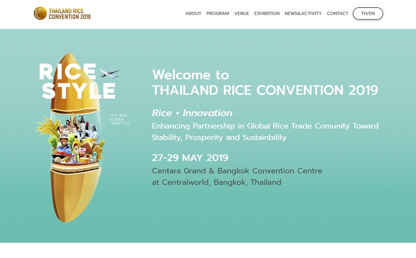 The Thailand Rice Convention 2019 is organized on the theme of “RICE Style” to show off the quality, innovation and varieties of Thai rice and its nutritional benefits that meet the demand of health-conscious consumers.