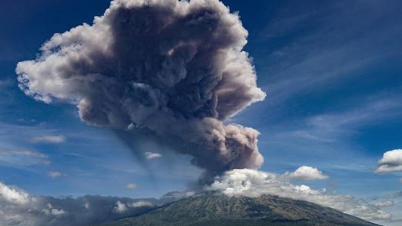ภูเขาไฟอากุงตั้งอยู่ห่างจากหาดคูตา แหล่งท่องเที่ยวยอดนิยมบนเกาะบาหลีราว 70 กิโลเมตร เริ่มปะทุเป็นครั้งคราวมาตั้งแต่ปี 2560 ทำให้เที่ยวบินต้องยกเลิกหลายครั้ง ชาวบ้านละแวกใกล้เคียงต้องอพยพหลายหน สำนักธรณีวิทยาอินโดนีเซียแจ้งว่า ภูเขาไฟปะทุล่าสุดช่วงก่อนเที่ยงวันนี้ตามเวลาท้องถิ่น พ่นกลุ่มเถ้าละอองสูงขึ้นไปในอากาศ แต่ยังไม่กระทบต่อการบิน ทางการคงระดับเตือนภัยภูเขาไฟลูกนี้ที่สูงสุดอันดับสอง และห้ามเข้าไปใกล้ในรัศมี 4 กิโลเมตรจากปากปล่องภูเขาไฟ ส่วนเมื่อครั้งที่ปะทุเมื่อเดือนสิงหาคมปีก่อน เที่ยวบินต้องยกเลิกหลายสิบเที่ยว และเมื่อครั้งที่เริ่มปะทุในปี 2560 ประชาชนต้องอพยพหลายหมื่นคน ภูเขาไฟลูกนี้เคยปะทุใหญ่ในปี 2506 คร่าชีวิตคนไปมากถึง 1,600 คน