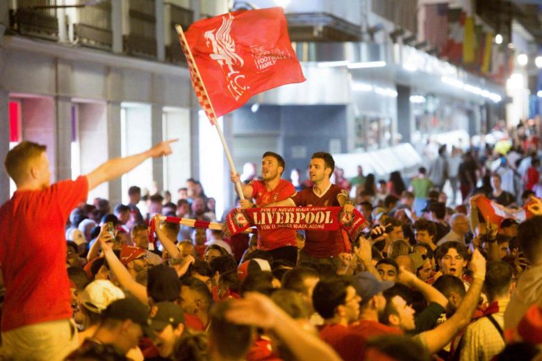 ลิเวอร์พูล 2 มิ.ย.- แฟนลูกหนังทีมหงส์แดง ลิเวอร์พูลออกมาฉลองชัยกันตามท้องถนนในเมืองลิเวอร์พูลของอังกฤษ หลังจากทีมรักทุบไก่เดือยทอง ทอตแน่ม ฮอตสเปอร์สไปด้วยสกอร์ 2-0 ประตู จากการประสานของโมฮาเหม็ด ซาลาห์ และดิวอก โอริกี ในนัดชิงชนะเลิศ ศึกฟุตบอลยูฟ่า แชมเปียนส์ลีก ที่กรุงมาดริด ของสเปน