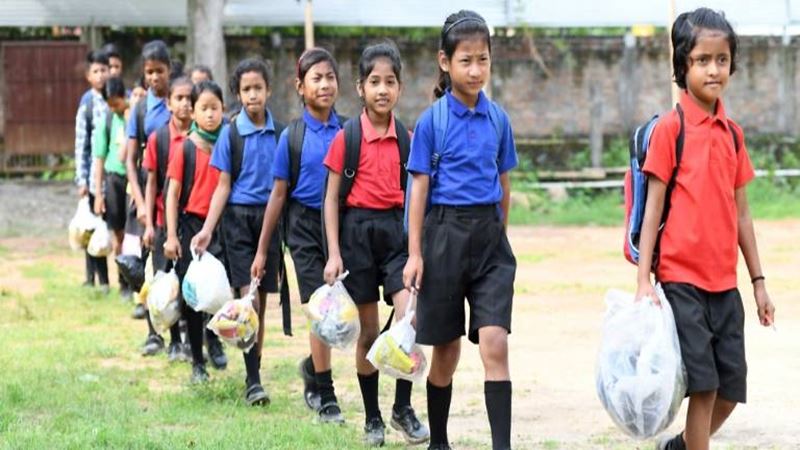 รัฐอัสสัม 5 มิ.ย.- โรงเรียนแห่งหนึ่งในรัฐอัสสัม ของอินเดีย หาทางช่วยโลกกำจัดขยะพลาสติก ด้วยโครงการเก็บขยะพลาสติกแลกเรียนฟรี