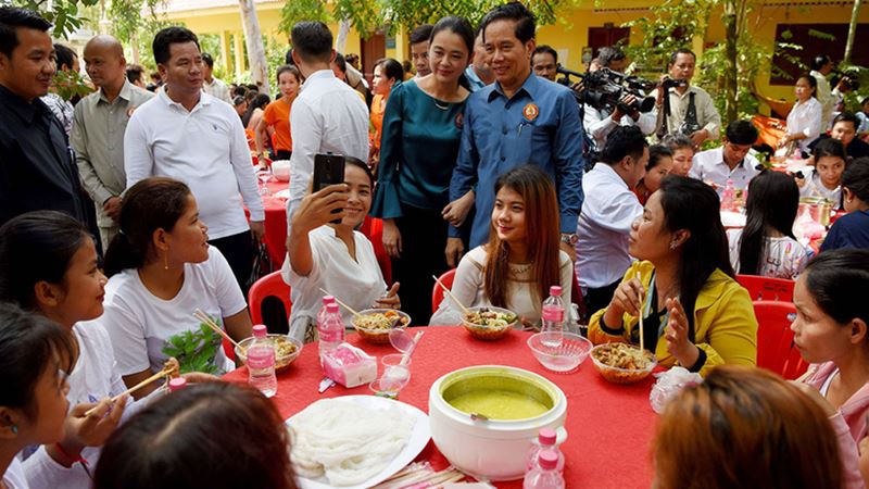 พนมเปญ 10 มิ.ย.- กลุ่มคนในกรุงพนมเปญมาร่วมกิจกรรมกินขนมจีนน้ำยาในวันอาทิตย์ หลังจากก่อนหน้านี้ฝ่ายรัฐบาลและผู้นำฝ่ายค้านต่างเชิญชวนผู้สนับสนุนฝ่ายตนมาร่วมกินอาหารกับกลุ่มต่างขั้วทางการเมือง โดยอ้างว่าเพื่อความสามัคคีในชาติทั้งที่มีวาระซ่อนเร้นทางการเมืองอยู่เบื้องหลัง เหมือนยกภาพแห่งความสามัคคีในอุดมคติ ทั้งที่จริงแล้วเป็นการตอบโต้กันทางการเมือง