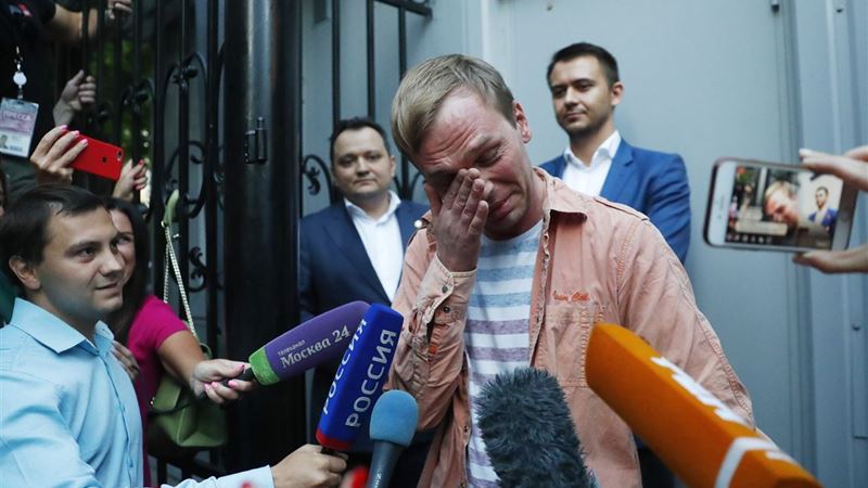 นายอิวาน โกลูนอฟ วัย 36 ปี ผู้สื่อข่าวอิสระของเว็บไซต์ข่าวเมดูซาที่ตั้งอยู่ในลัตเวีย หลั่งน้ำตาขณะออกจากห้องขังสถานีตำรวจในกรุงมอสโกเมื่อวันอังคารตามเวลาท้องถิ่น เขาประกาศจะทำหน้าที่ต่อไป นายโกลูนอฟรายงานข่าวเจาะลึกหลายประเด็น เช่น ธุรกิจหนี้นอกระบบ รายได้ของครอบครัวรองนายกเทศมนตรีมอสโก งบประมาณงานโยธาในกรุงมอสโกที่สูงผิดปกติ และเสียงครหาเรื่องเซ็นเซอร์สื่อ เขาถูกตำรวจขอตรวจค้นและจับกุมขณะจะไปพบนักข่าวอีกคนในกรุงมอสโกเมื่อสัปดาห์ก่อน ตำรวจอ้างว่าพบเมฟีโดรน ซึ่งเป็นยาเสพติดในกระเป๋าของเขา และเมื่อไปค้นที่ห้องพักก็พบเพิ่มอีก มีข่าวว่าเขาถูกทำร้ายทุบตีระหว่างการจับกุมด้วย
