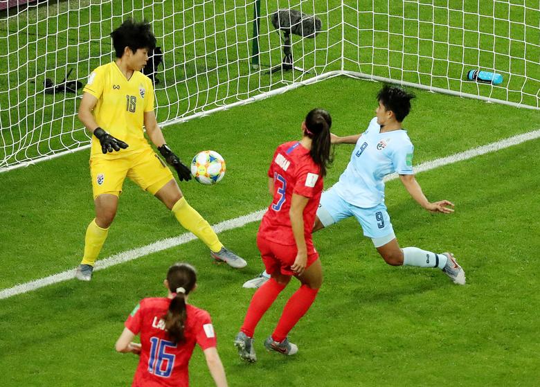 ทีมหญิงสหรัฐทำประตูในครึ่งหลังถึง 10 ประตู หลังจากนำทีมไทยไป 3-0 ในครึ่งแรก โดยชัยชนะ 13-0 ถือเป็นสถิติใหม่ หลังจากที่ทีมเยอรมนีเคยชนะอาร์เจนตินา 11-0 ในปี 2017 อเล็กซ์ มอร์แกน ดาราประจำทีมยิงไป 5 ประตู แต่การแสดงความดีใจหลังจากทำประตูได้ในการแข่งขันที่ดูเหมือนจะบุกแต่เพียงฝ่ายเดียวจะไม่ได้ทำให้แฟนบอลชื่นชอบกันทุกคน เคย์ลิน ไคลน์ อดีตนักฟุตบอลหญิงทีมชาติหญิงของแคนาดา ซึ่งทำงานเป็นผู้วิเคราะห์เกมการแข่งขันให้กับโทรทัศน์แคนาดา กล่าวในระหว่างการออกอากาศว่า ทีมชาติแคนาดาไม่เคยคิดที่จะแสดงความยินดีกันเกินเลยแบบนั้น เธอรู้สึกว่าไม่สุภาพและเป็นเรื่องน่าอาย ในขณะที่ผู้ใช้ทวิตเตอร์หลายคนก็แสดงความเห็นวิพากษ์ตำหนิเช่นเดียวกัน ทางด้านแนนซี อาเมอร์ คอลัมนิสต์ของหนังสือพิมพ์ยูเอสเอ ทูเดย์ กลับเห็นว่า ไม่ได้เป็นเรื่องน่าอายอะไร ในขณะที่จิล เอลิส โค้ช ของทีมหญิงสหรัฐกล่าวตอบความเห็นว่า ทีมสหรัฐน่าจะผ่อนการเล่นลงบ้างหลังจากนำทีมไทยหลายประตูเพื่อไม่ให้ทีมไทยรู้สึกอับอาย โดยเธอกล่าวว่า การแข่งขันนี้คือฟุตบอลโลก ทุกทีมต้องมีความสามารถถึงมาถึงจุดนี้ได้ การให้ความเคารพกับทีมคู่แข่งคือการเล่นอย่างเต็มที่ เต็มความสามารถ.-สำนักข่าวไทย