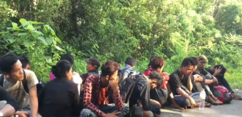 SONGKHLA, June 14 (TNA) – Police and military officers rounded up 18 illegal migrant workers in the forest in Sadao district, Songkhla, Thailand.