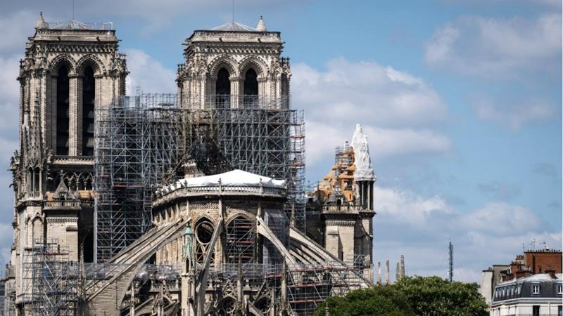 ประธานาธิบดีเอมานูว์แอล มาครงของฝรั่งเศสกำหนดเป้าหมายบูรณะมหาวิหารนอเทรอดามให้แล้วเสร็จภายใน 5 ปี หลังจากเกิดไฟไหม้เมื่อวันที่ 15 เมษายน ทำให้ยอดแหลมด้านบนพังลงมา คนงานมากถึง 150 คนกำลังเร่งรื้อซากความเสียหายและทำให้โครงสร้างแข็งแรงโดยทำงานทุกวันอย่างไม่หยุดมือ ขณะที่ร่างกฎหมายบูรณะยังคงค้างอยู่ในสภาเนื่องจากสภาผู้แทนราษฎรและวุฒิสภาเห็นไม่ตรงกัน และคงไม่สามารถผ่านร่างกฎหมายได้ก่อนสิ้นเดือนหน้า นักธุรกิจใหญ่ในฝรั่งเศสและประชาชนทั่วไปรับปากจะบริจาคเงินรวม 850 ล้านยูโร (ราว 29,695 ล้านบาท) แต่จนถึงขณะนี้ได้รับเงินเพียง 80 ล้านยูโร (ราว 2,795 ล้านบาท) เท่านั้น เพราะนักธุรกิจขอบริจาคเงินเป็นงวด ส่วนคนทั่วไปบางส่วนขอถอนตัวเพราะเห็นว่าการรณรงค์เงินบริจาคประสบความสำเร็จมากแล้ว.-สำนักข่าวไทย