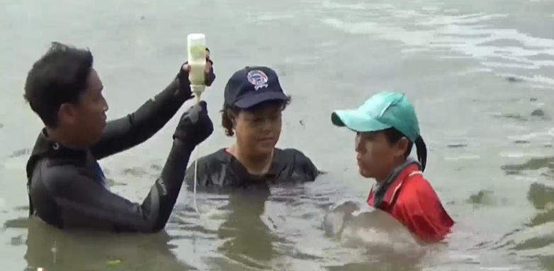 Visitors have observed the female dugong being fed with milk and seagrass as well as exercising with humans. (TNA)