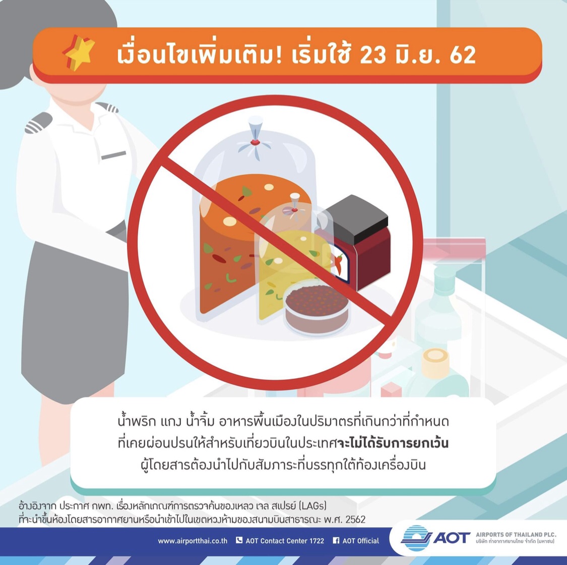 Civil Aviation Authority of Thailand (CAAT), which was put into effect on Sunday adds food liquids in its restrictions on the carry-on luggage.